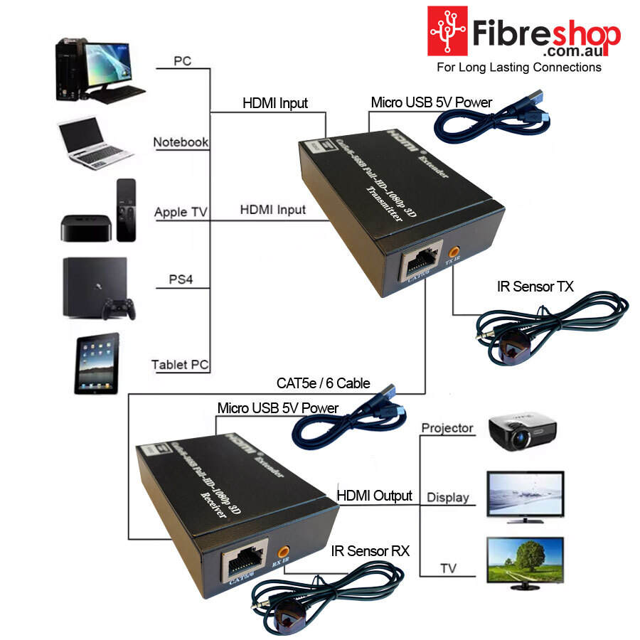 HDMI Extender with IR extends HDMI Signal cable up to 196 feet(60 meters) between the TX and RX unit via single RJ45 cat5e/6 ethernet cable.which breaks the limitation of HDMI transmission's length, and cost saving for HDMI long distance transmission. For better picture quality and a longer distance transfer, we recommend using Cat 6 cable.