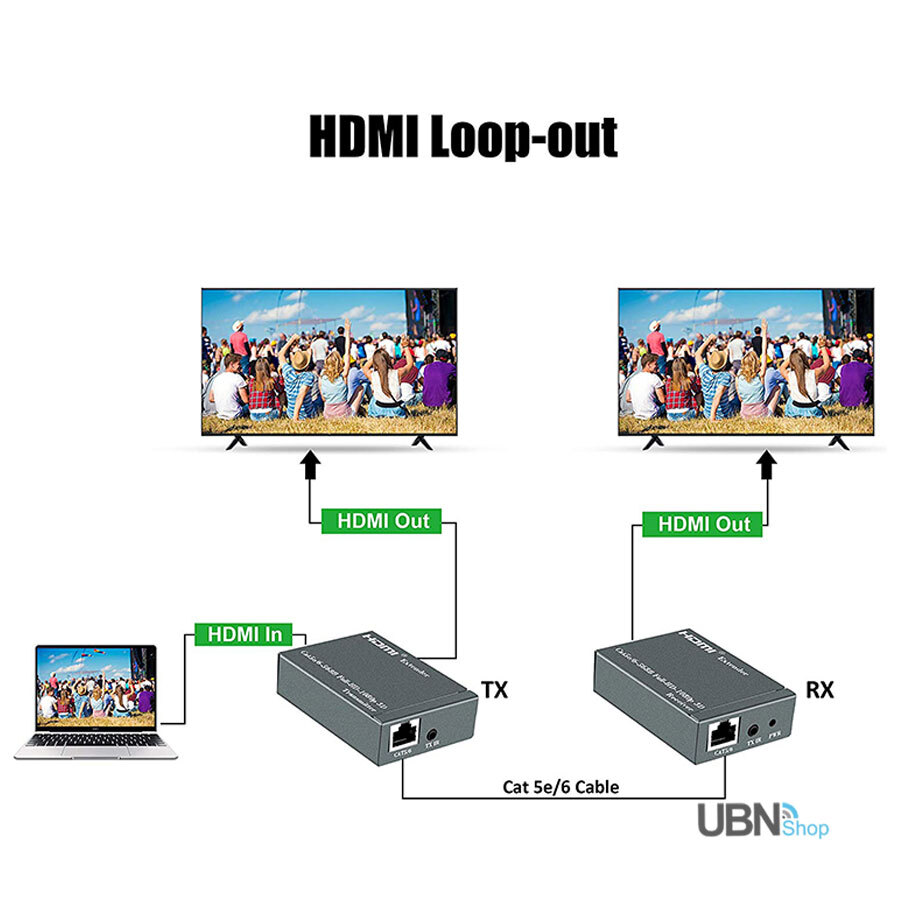 HDMI Loop-out: Additional HDMI output on the Transmitter to connect to a local display or monitoring.