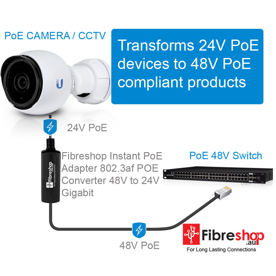 An Instant PoE Adapter designed for indoor use that transforms almost any PoE device into a fully compliant 48V, PoE-compatible product. Transforms 24V PoE devices to 48V PoE-compliant products Compatible with any 802.3af PoE switch and airMAX M devices