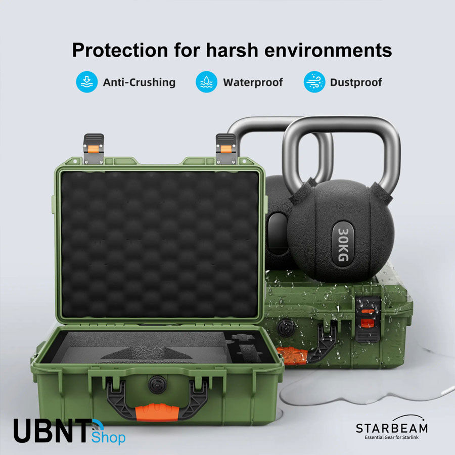 This rugged hard case is specially crafted to protect your Starlink Mini dish and accessories during transport and storage. The impact-resistant polypropylene (PP) exterior forms a durable shell, shielding against drops, bumps, and accidental crushing.
