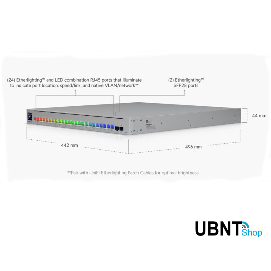 Enterprise-grade 24-port, Layer 3 Etherlighting™ PoE+++ switch with high-capacity 10 GbE RJ45 and 25G SFP28 connections for high availability system design.