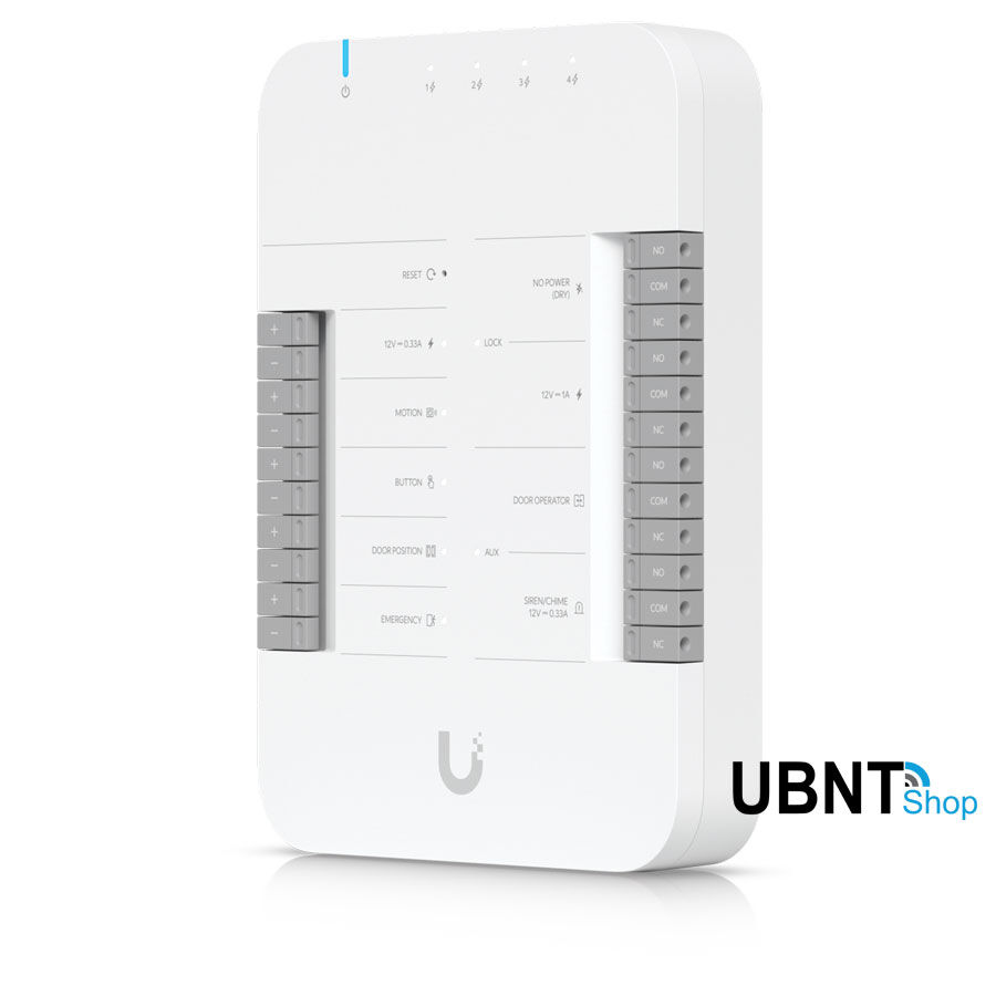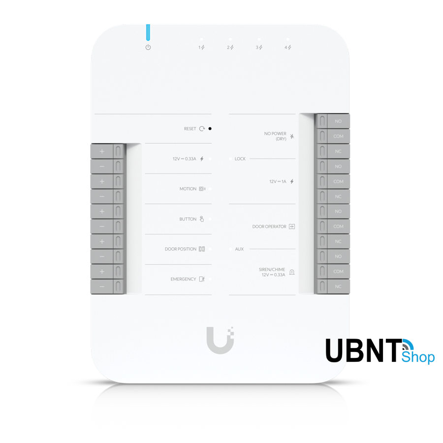 The UniFi Access Hub comes with versatile interfaces, including support for most electric bolts/strikes, magnetic locks, and 12V access accessories such as motion sensors, push buttons, and alarms. The three Ethernet PoE powered reader interfaces minimize need for wiring work and offer a convenient way to add a UniFi G3-Flex surveillance camera for additional security. The seamlessly integrated UniFi Access solution is managed with UniFi Access application. Easily manage users, visitors, schedules, and access policies with the with the intuitive browser-based interface.