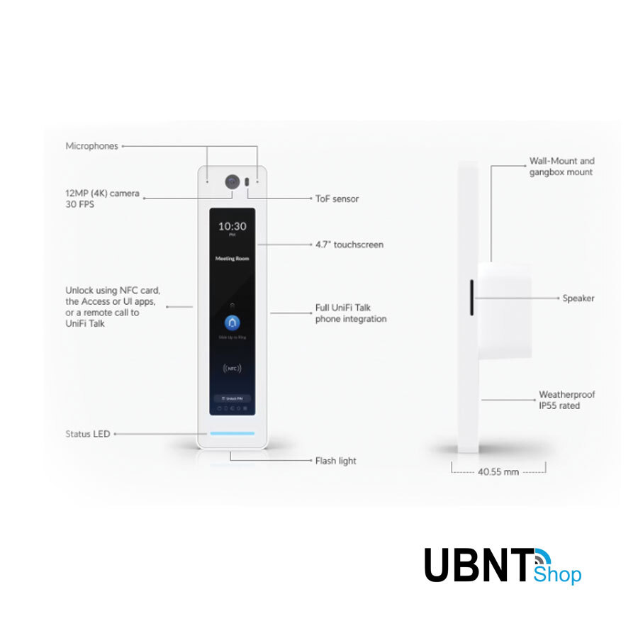 - Unlock using an NFC card or UniFi Identity mobile app
