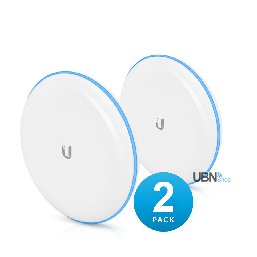 The UniFi Building-to-Building Bridge, model UBB, is the ideal solution for high-throughput connectivity with a range of up to 500 m. Integration with the UniFi Controller makes bridging two networks seamless. Comprised of two pre-paired endpoint devices, the UBB delivers a Point-to-Point (PtP) link – up to 1.7+ Gbps bi-directional – using 802.11ad technology on the low-interference 60 GHz radio band. For backup, a 5 GHz radio using 802.11ac technology is available.