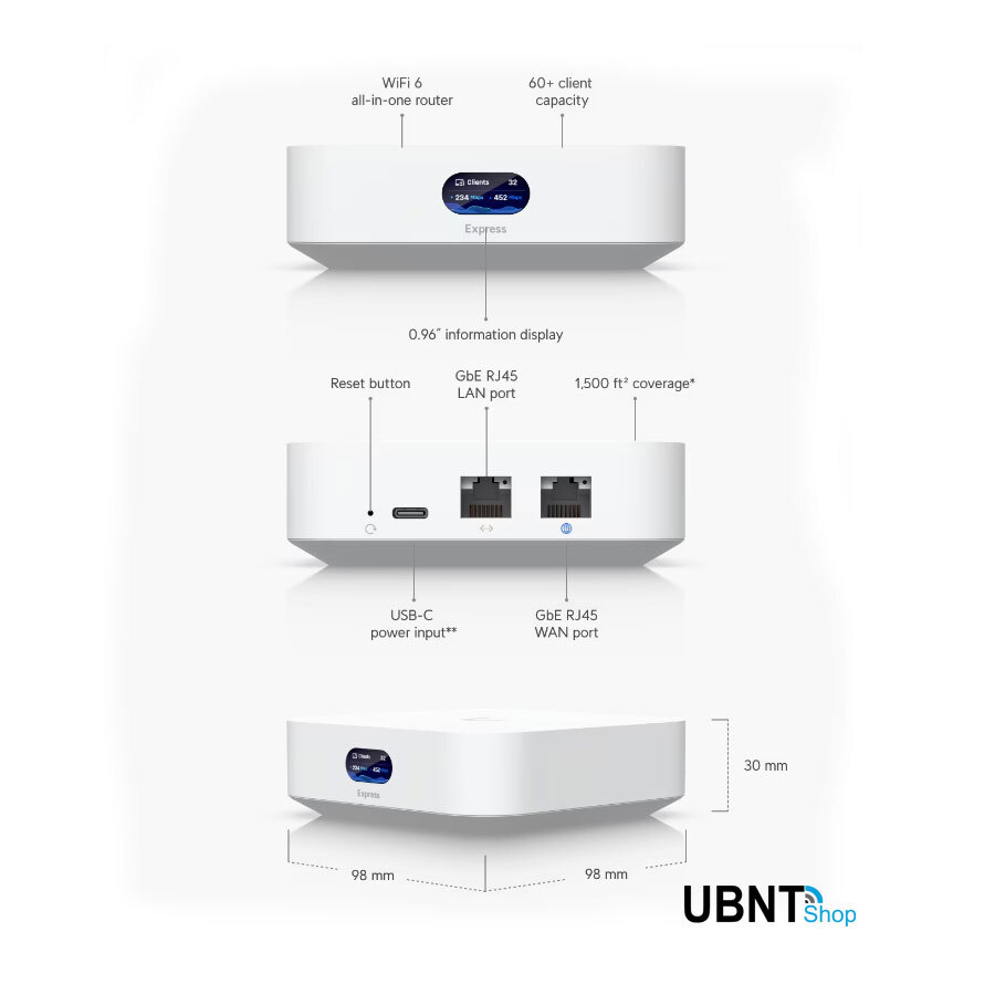 UniFi Express UX, Powerfully Compact UniFi Cloud Gateway And WiFi 6 Access Point - Specifications