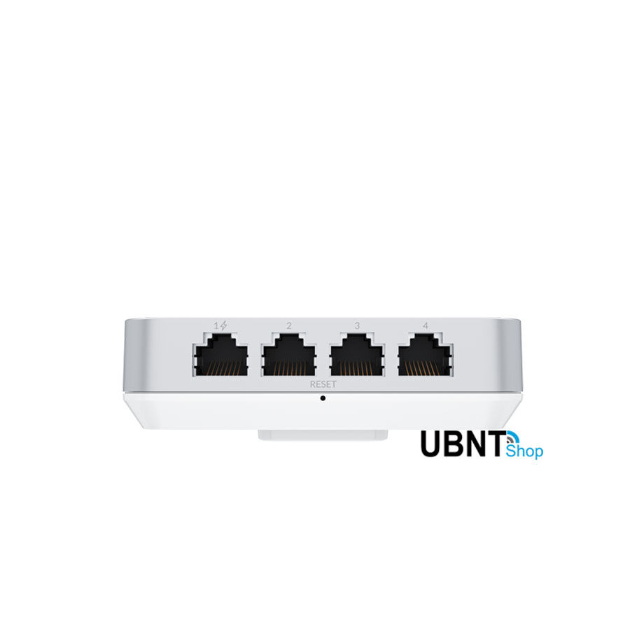 • 1x4 (1 in, 4 out) switched Gigabit Ethernet ports with configurable PoE passthrough (port 1 only).