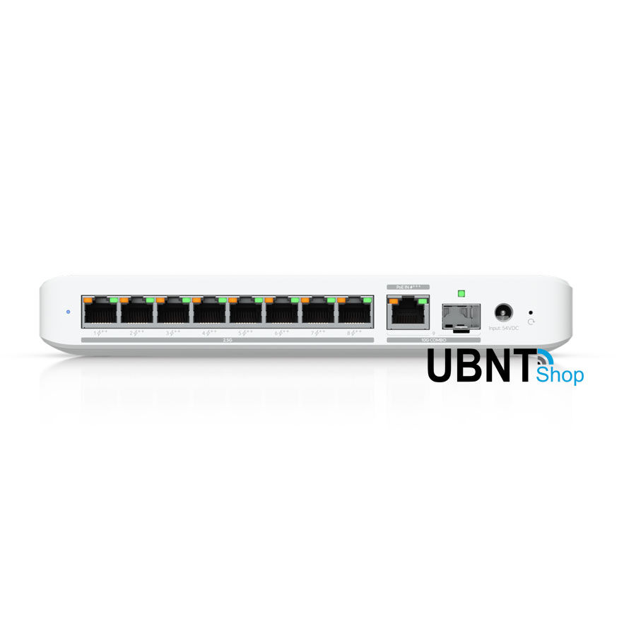 Ubiquiti Flex 2.5G PoE is a flexible, 8-port 2.5 GbE PoE++ switch with a 10 GbE RJ45/SFP+ combination uplink port that can be powered with PoE+++ or an AC power adapter*.